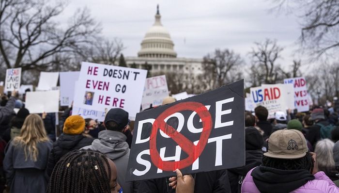 2025年2月5日,美国华盛顿,民众举行抗议反对关闭美国国际开发署视觉中国
