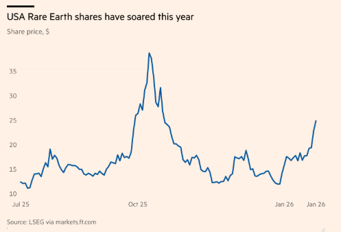 美国稀土公司股价今年大幅飙升 FT
