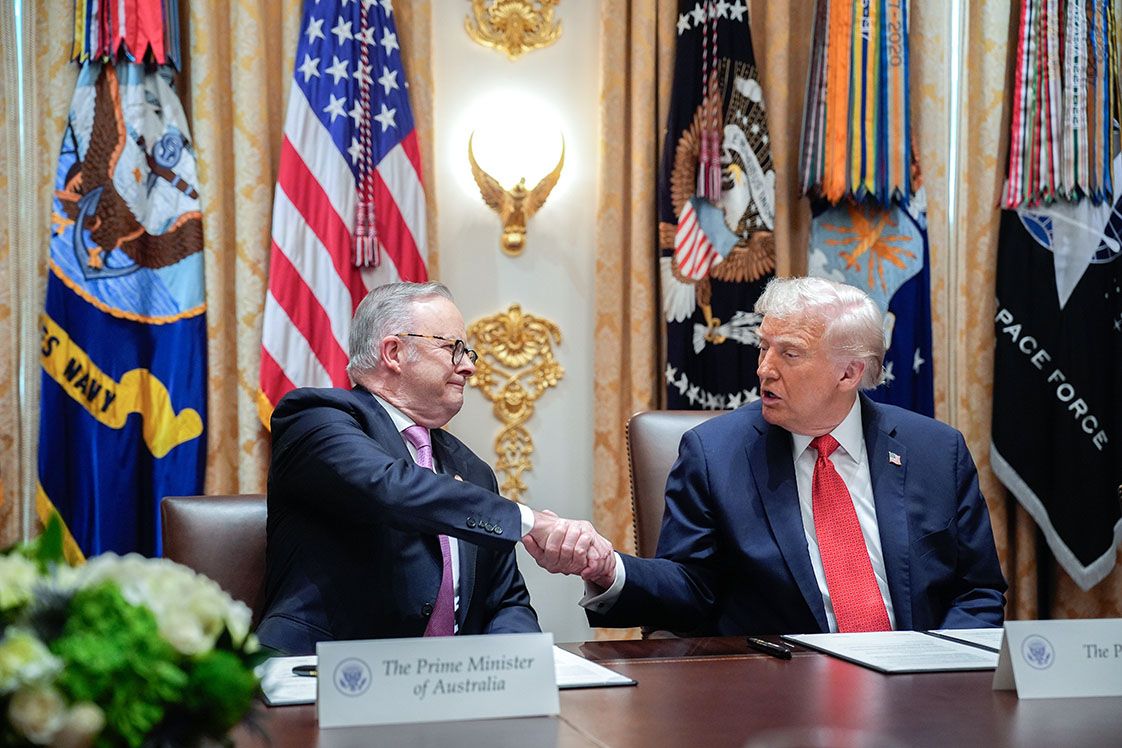 10月20日,美国总统特朗普(右)与澳大利亚总理阿尔巴尼斯(左)在白宫会晤,并签署了一项关键矿产协议。 IC photo