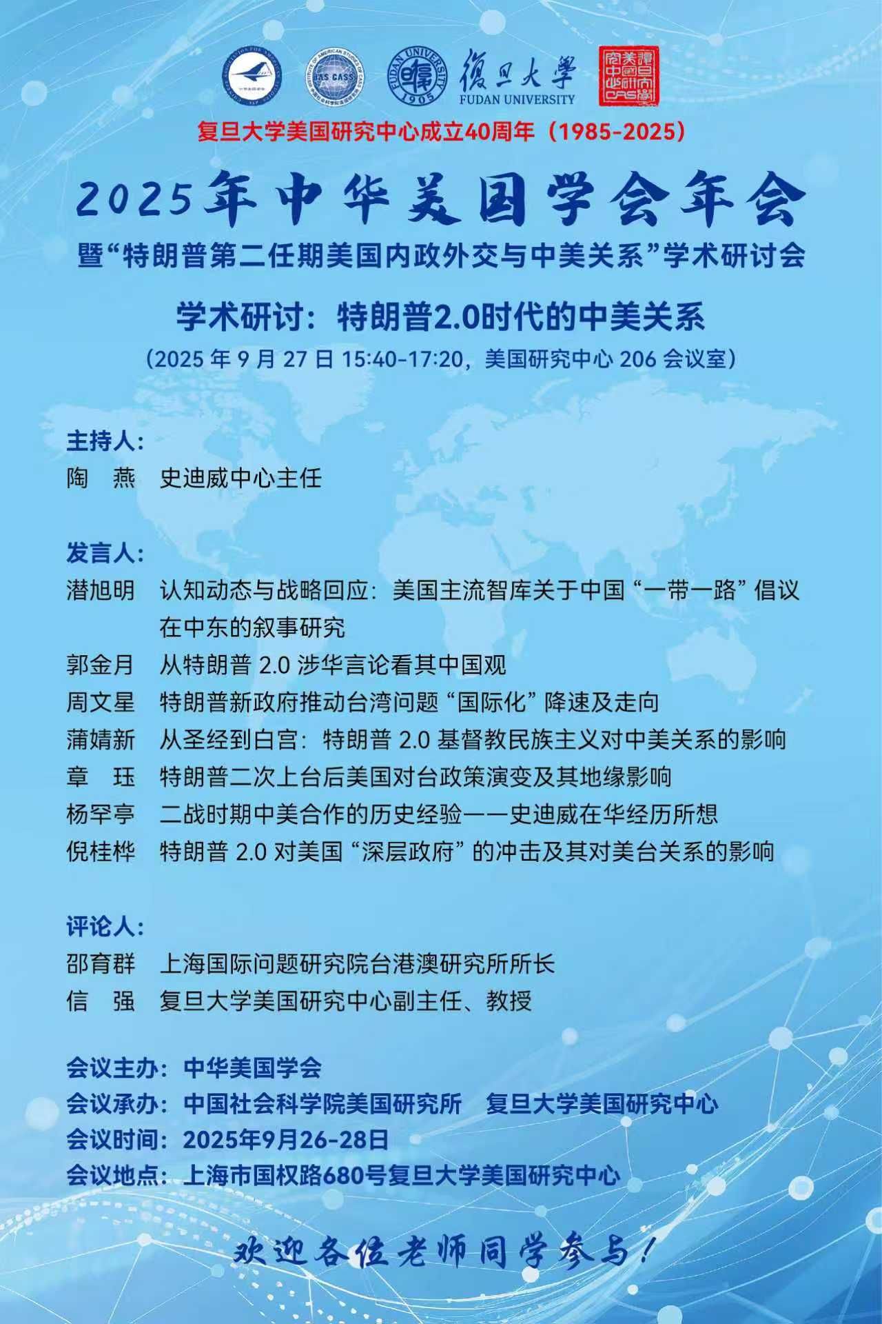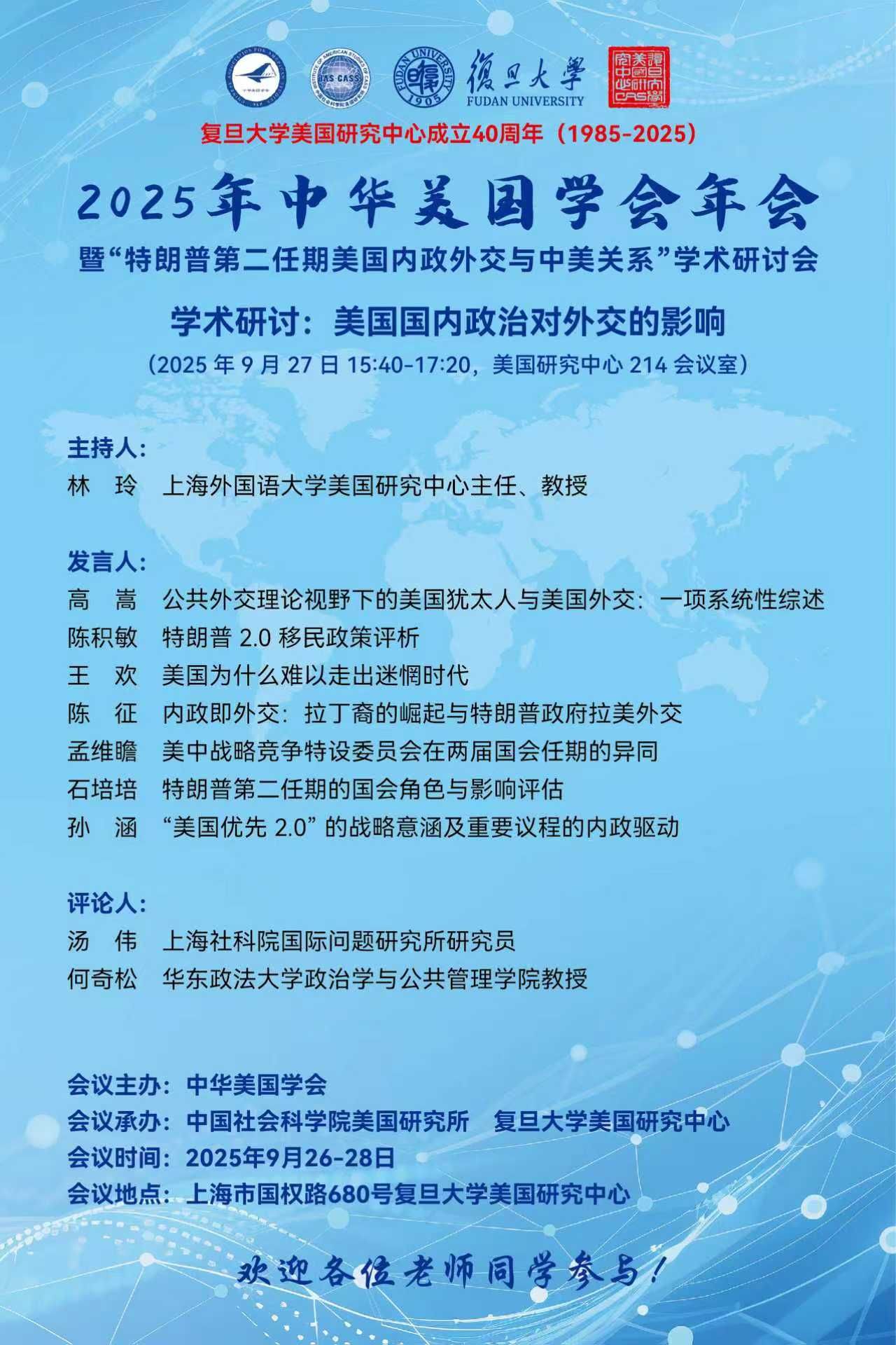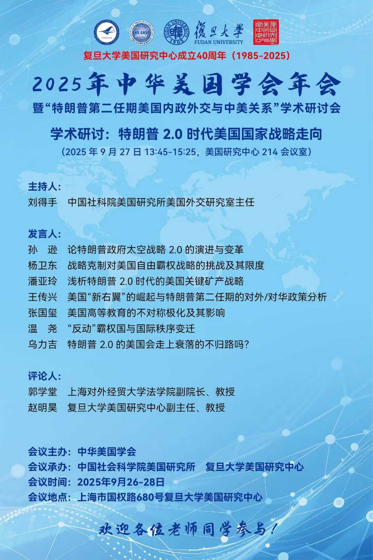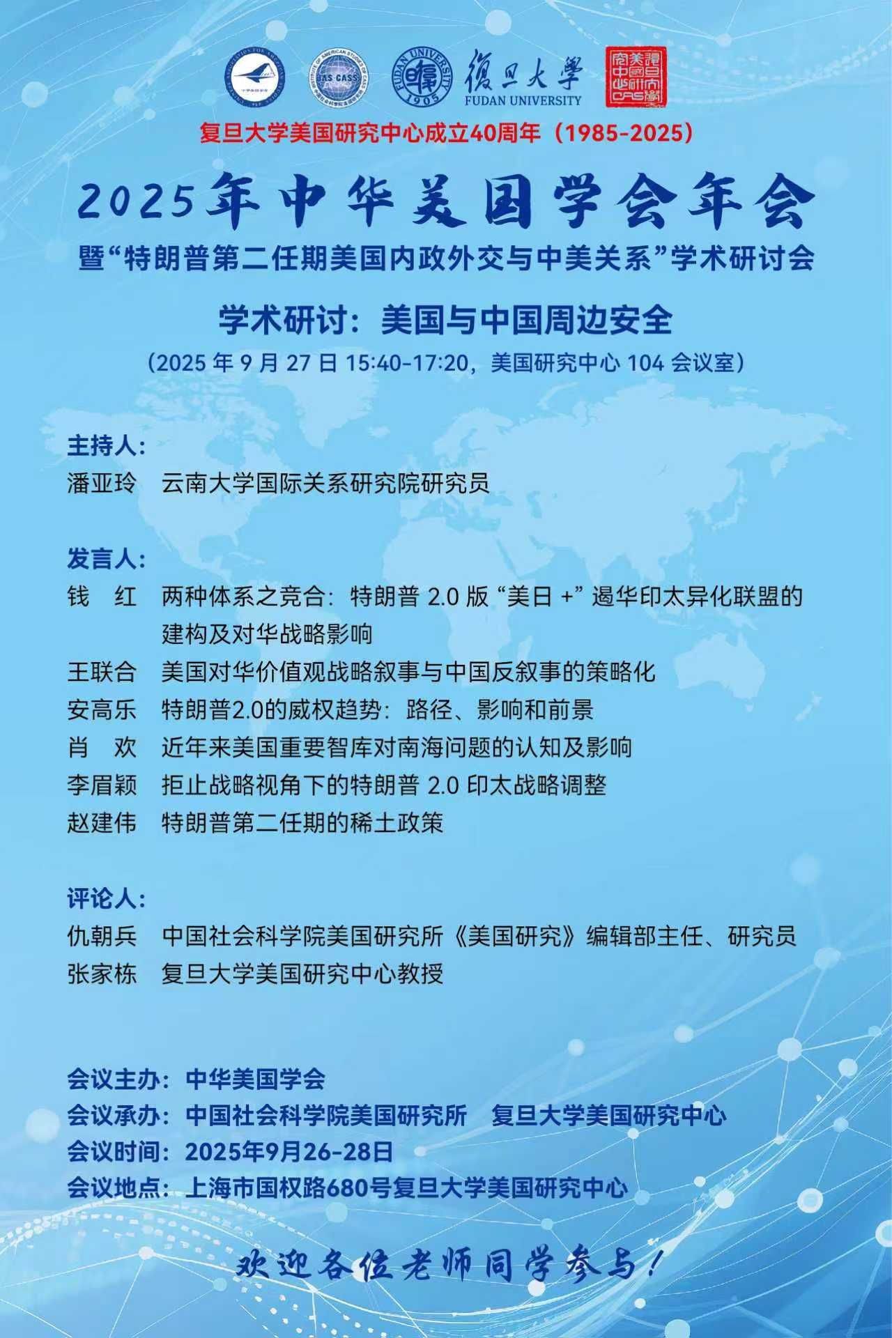 会议预告 | 2025年中华美国学会年会 暨“特朗普第二任期美国内政外交与中美关系”学术研讨会