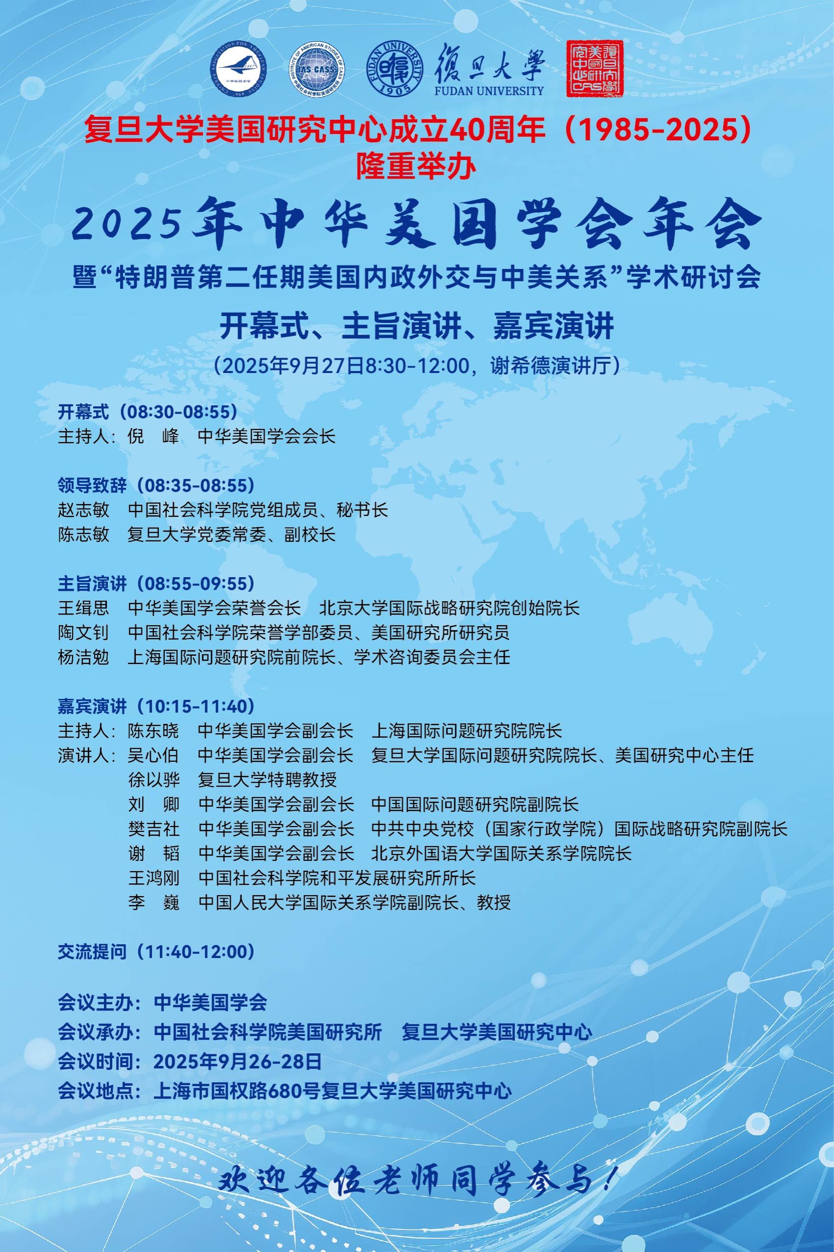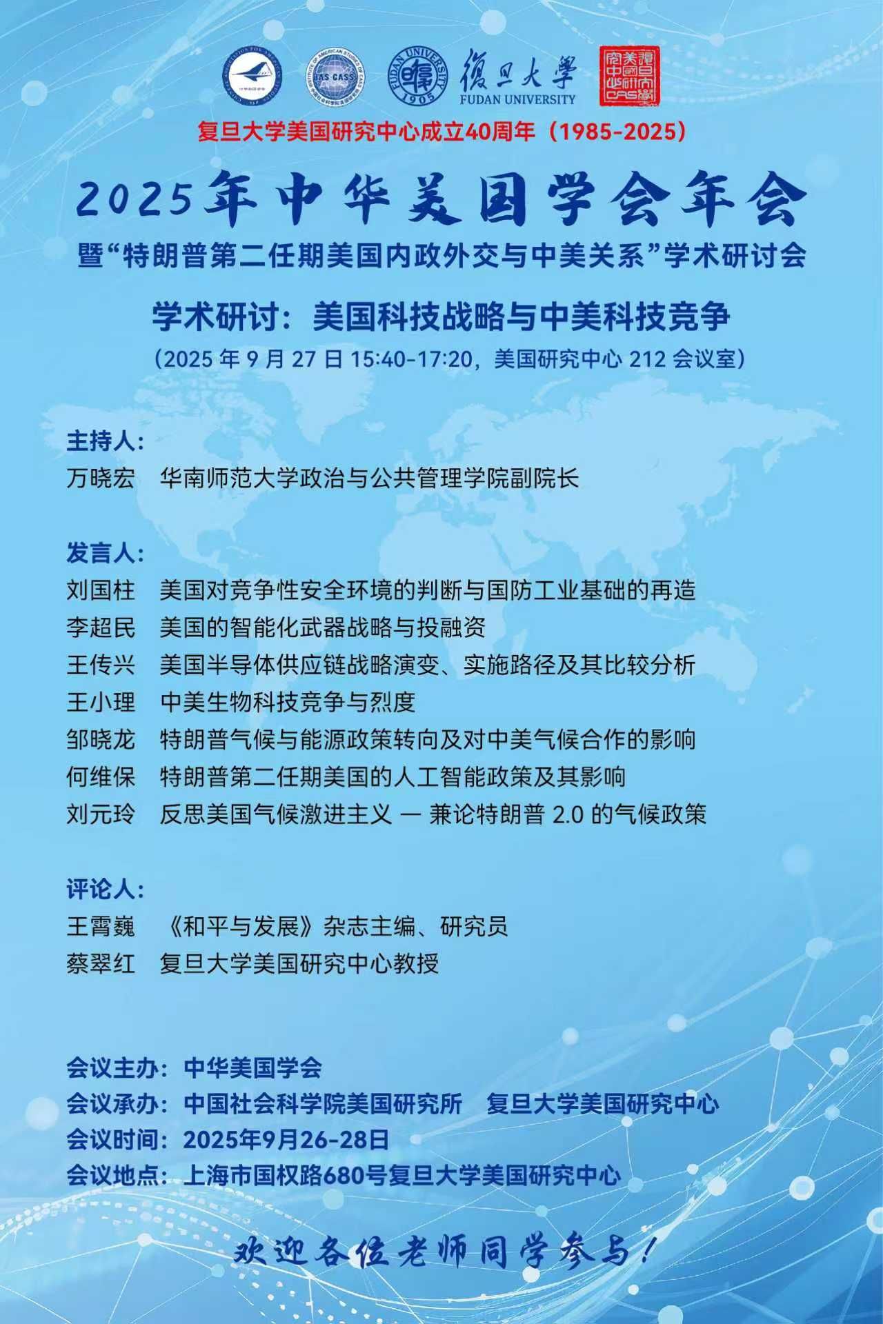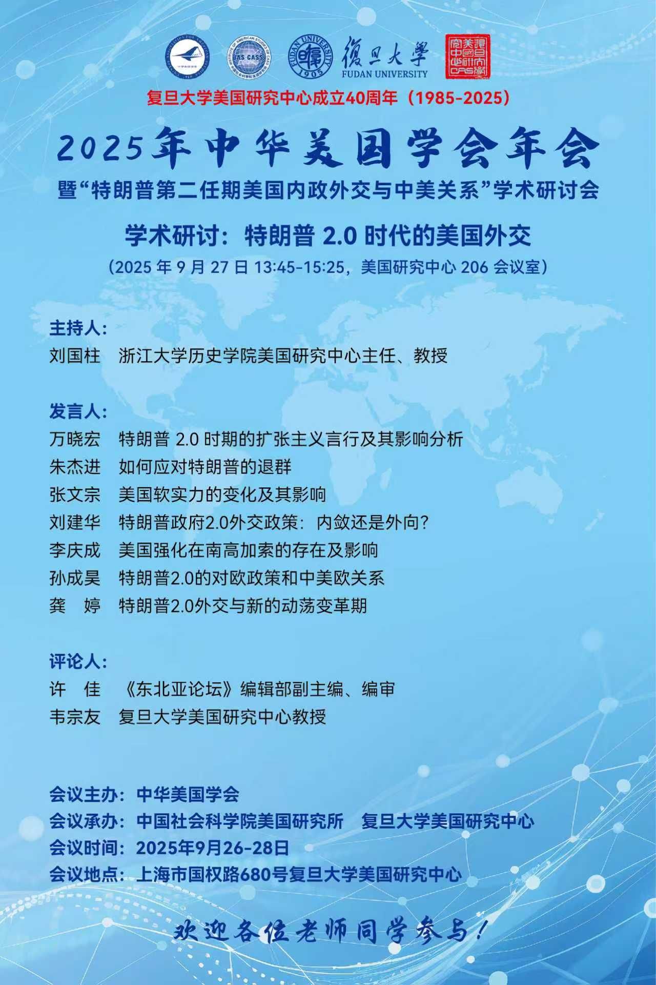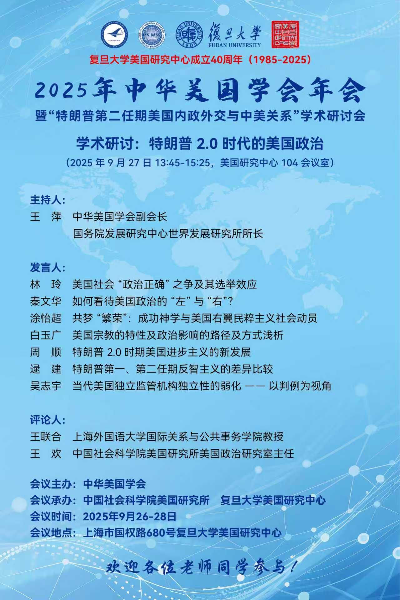 会议预告 | 2025年中华美国学会年会 暨“特朗普第二任期美国内政外交与中美关系”学术研讨会