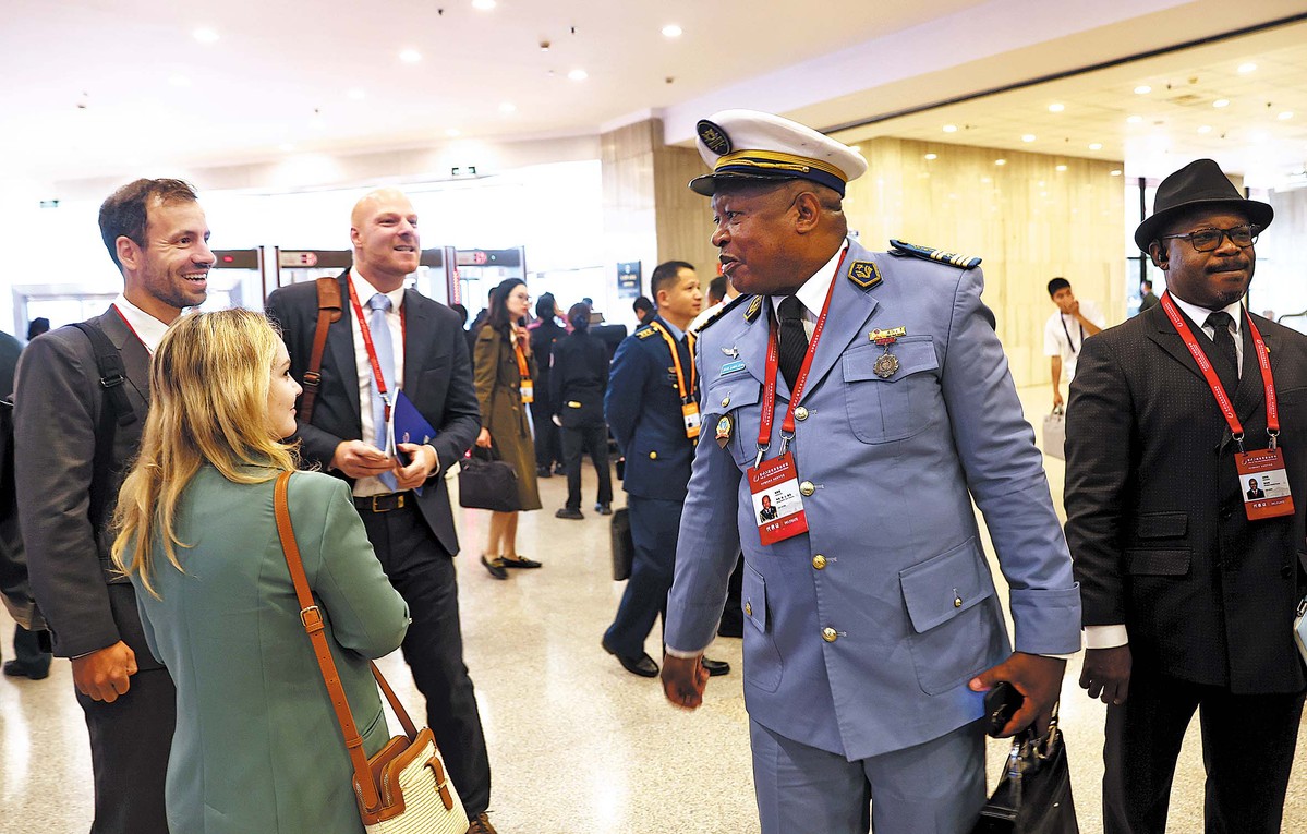 Guests attending the 12th Beijing Xiangshan Forum enter the venue at the Beijing International Convention Center on Wednesday. ZOU HONG/CHINA DAILY