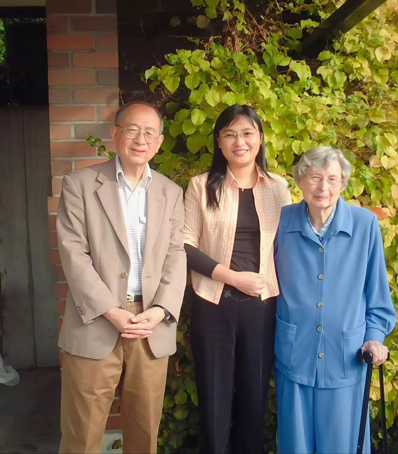 2004年在美国西雅图与中心两位图书馆捐助人哈佛大学教授江渊声(Nelson Yuan-sheng Kiang)及其岳母图书馆员Sarah Ryder Norris Craig合影