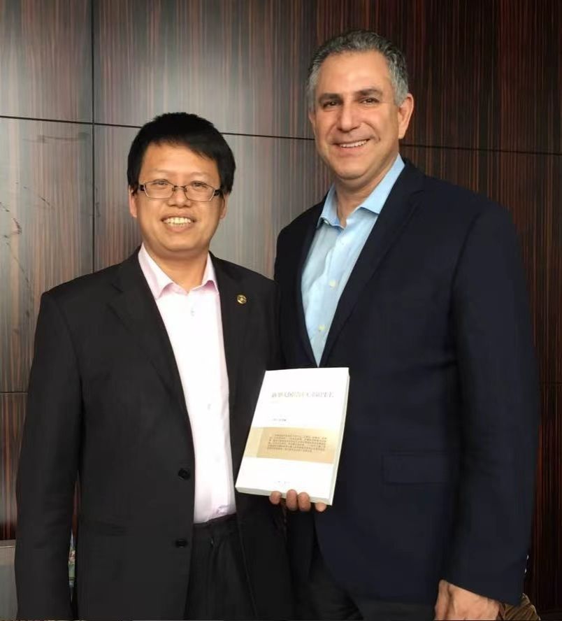 带我这个博士学生,让吴老师紧张了6年(2008—2014),用后来吴老师的话说是,我当时以为你出不去了(毕不了业),你后来还是出去了。毕业后,趁热打铁赶紧把博士学位论文修改出版了,这就是《新型大国经济关系的生长:1978—2015中美经济外交》,书的封面上写道:“不必忌言责任,更无须忌讳竞争。一个经济力量上相对崛起的中国和经济力量上相对衰落的美国正在重构世界经济的顶层结构,而中美关系决定了世界未来。”正好2016年4月书从出版社寄到的时候,是我公司举办第三届全球并购峰会,美国前商务部副部长弗朗西斯科桑切斯应约到峰会发表主题演讲,而他也就成为我这本书第一个赠书对象和读者,送书给他,他非常高兴,桑切斯是中美民间经济外交的活跃人士。当时自觉功力尚浅,博士学位论文出版后还大有可改之处,又怀着美好愿望,当时与出版社谈版权的时候,把出版社的版权从10年压缩到5年,计划着以后每5年更新出版一次。现在过去了10年,没能做到。